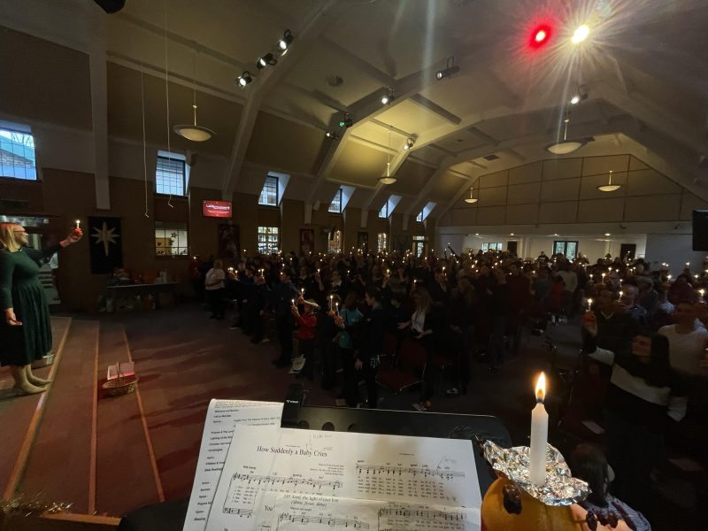 Kensington URC hosted a happy candlelit carol service. Afterwards, the congregation and friends enjoyed delicious Ukrainian savouries, Ghanaian dough balls, and traditional mince pies.